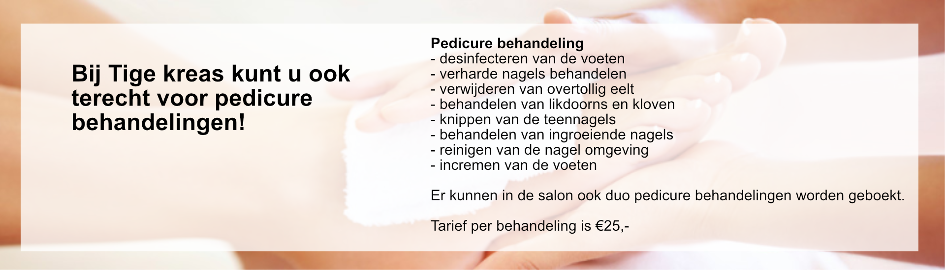 Onze schoonheidssalon onderscheidt zich door toegankelijk te zijn voor minder valide klanten, ook zij kunnen bij Tige kreas terecht, tevens is er ruim gelegenheid om uw auto nabij de salon te parkeren.